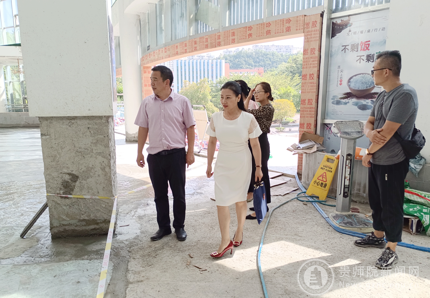 本网讯 8月19日,新学期伊始,校党委委员、副校长邹晓青到后勤处实地检查感恩一食堂装修改造、商超营运、电网改造项目施工等工作开展情况,并与后勤处干部职工座谈。