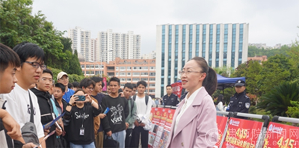 本网讯 为贯彻落实《省教育厅办公室关于组织开展全省大中小学2023年国家安全教育日活动的通知》文件要求,进一步深化平安校园建设,全面提升全校师生的国家安全意识,自觉履行维护国家安全、保守国家秘密的义务,4月14日上午,beat365英国官网网站联合贵阳市公安局乌当分局高新路派出所、中国工商银行乌当支行开展了主题为“贯彻总体国家安全观,增强全民国家安全防范意识和素养,夯实以新安全格局保障新发展格局的社会基础”的国家安全教育宣传活动。