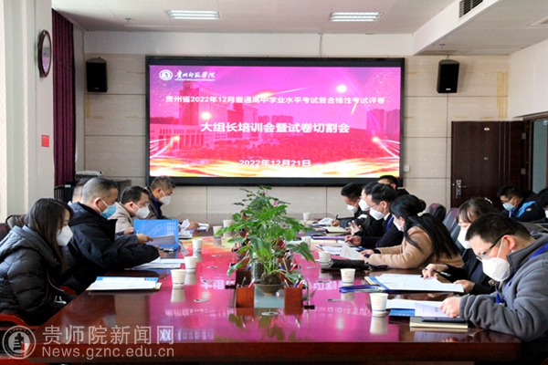 本网讯 12月21日下午,贵州省2022年12月普通高中学业水平考试暨合格性考试评卷学科大组长培训会、试卷切割会在beat365评卷基地会议室召开。校党委副书记熊世桓,省会考办主任张祥云出席会议,各评卷学科大组长,校评卷基地办公室副主任、继续教育学院副院长何荣,深圳市海云天科技股份有限公司项目负责人参加会议,会议由校评卷基地办公室副主任、继续教育学院直属党支部书记韦丹主持。