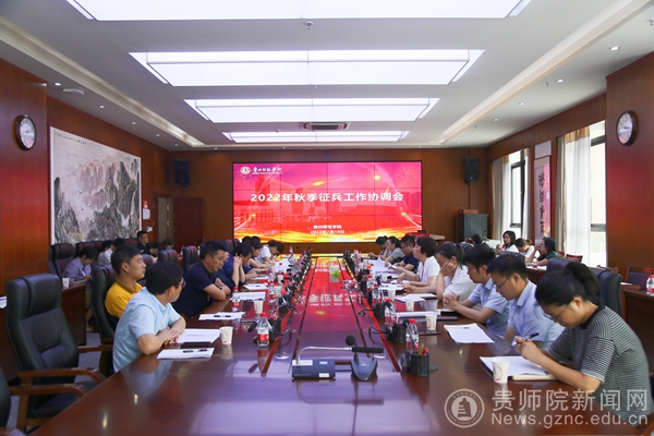 为贯彻落实2022年贵州省征兵工作领导小组(扩大)会议精神,切实做好毕业生征兵工作,7月18日学校在信息楼二楼会议室召开2022年秋季征兵工作协调会,校党委委员、副校长邹晓青出席会议并讲话,会议由校人民武装部副部长官鹏飞主持。