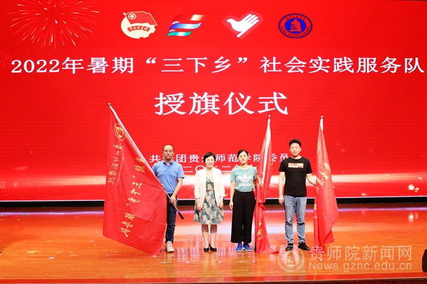 出征仪式上,石培新为西部计划志愿者代表赠予《习近平的七年知青岁月》书籍,鼓励他们在基层实践中成长成才。韦维和其余与会校领导为“西部计划”志愿服务队和暑期“三下乡”社会实践服务队授旗。
