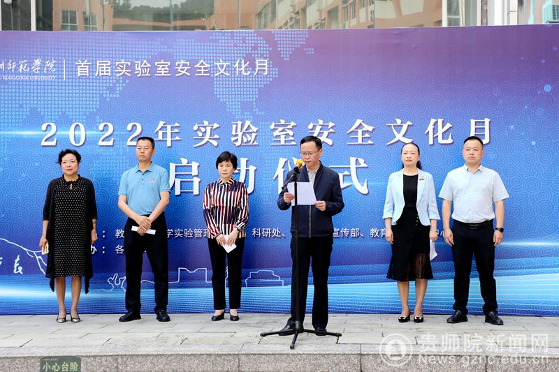 本网讯 5月31日,beat365英国官网网站2022年实验室安全文化月启动仪式校在求真苑尚行楼举行。校长韦维出席并讲话,校党委委员、副校长熊世桓主持启动仪式。