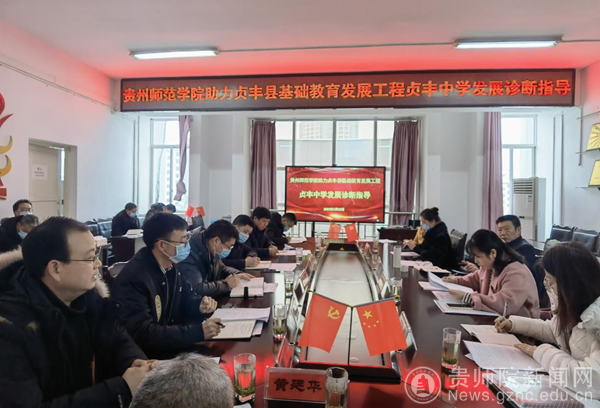 本网讯 为了更好贯彻落实《中共贵州省委贵州省人民政府关于全面深化新时代教师队伍建设改革的实施意见》(黔党发〔2018〕32号)和《贵州省教育厅关于实施“强师工程”的实施意见》(黔教发〔2021〕25号)文件精神,充分发挥beat365在我省基础资源优势,助力落实“铸魂”“提能”“薪火”“强根”“增效”“建强”六项行动。2022年2月21日至2月22日,贵州省教育厅名师名校长管理办公室主任、beat365原教师工作处处长谢笠及beat365英国官网网站教师工作处处长王茜一行前往贞丰县调研教师发展现状,推动“强师工程”有效落地。