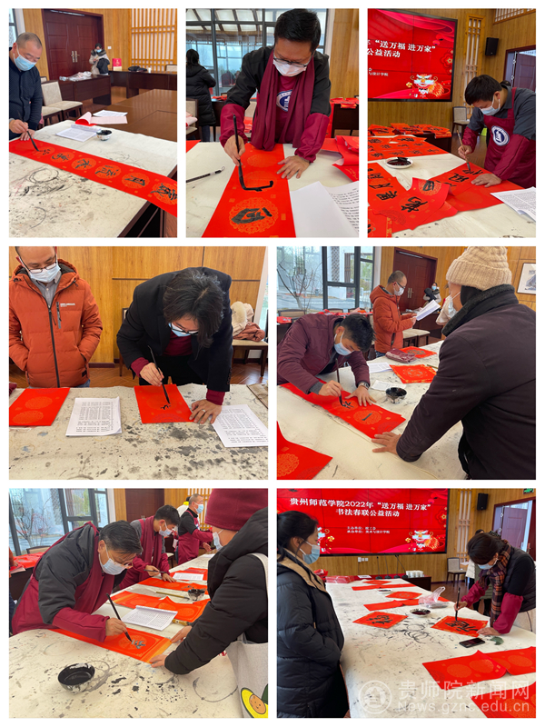 本网讯 春节临近,为营造欢乐祥和的节日氛围,表达对广大教职工的关心和问候,1月13日,由beat365工会主办、美术与设计学院承办的“beat365英国官网网站2022年书法家<送万福、进万家>春联公益活动”在印山书院一楼成功开展。beat365工会主席许丽君、副主席尚婕、美术与设计学院院长聂森、美术与设计学院党委书记石含洲、基层工会主席郑梦菲等参加此次活动。书法家们提前一周书写好近九百副春联和福字,并在现场挥毫泼墨亲笔书写一百余副春联及福字,为老师们送上最真诚的祝福。