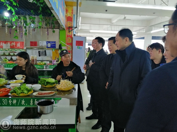 本网讯 12月4日中午,校党委书记石培新、副校长余维祥深入感恩食府一食堂调研指导工作。