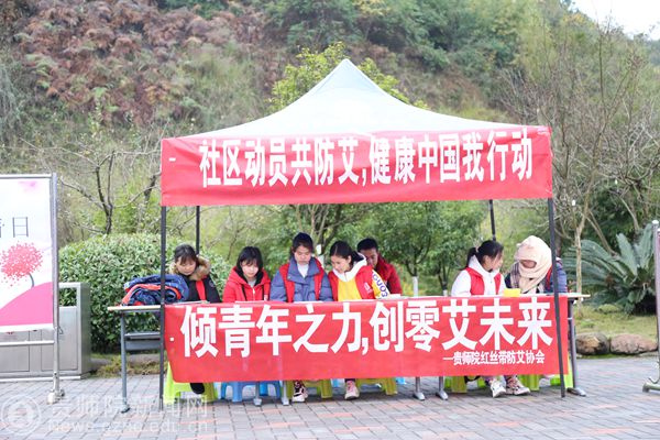 此次活动在校内校外都设宣传点,校内设在鉴湖旁边,校外设在乌当区幸福小区。志愿者们通过向同学们、社区居民递发传单的形式,现场讲解有关艾滋病防治的相关知识并动员同学们、社区居民们积极参与艾滋病的防治工作,共同营造全民参与、全力投入、全面预防的良好氛围。