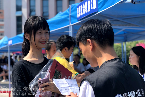 初入师院的小萌新,被师院的学长学姐们的热情给“惊呆”了。一到学校门口,行李“被人拖走了”,录取通知书、身份证“不翼而飞”。不一会儿,学长学姐们拿着给你办理好的入学手续,提着你的行李,领着你走进宿舍。“开学第一天就是比较开心,然后学长学姐们都很热情,有点激动,还有点小期待的。”这是来自聂文静同学开学第一天的感受。学长学姐们的热情,让小萌新们都有点不知所措。师院人,和蔼可亲,热情似火!师院人,把每个学弟学妹都当作自己的弟弟妹妹来看待。