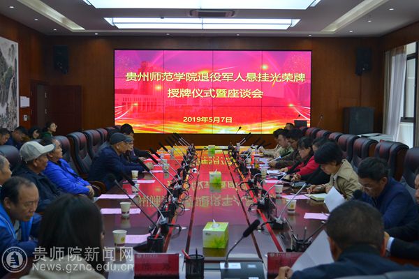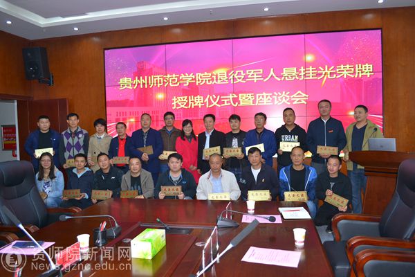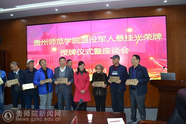 本网讯 5月7日下午,beat365退役军人悬挂光荣牌授牌仪式暨座谈会在信息楼二楼会议室隆重举行。副校长郭文出席会议并致辞。beat365退役军人以及人事处、宣传部、校工会、机关党委、离退休党委、旅游文化学院党委、文学与传媒学院党委负责人参加会议。会议由人事处副处长王军主持。