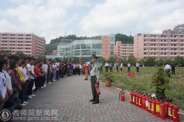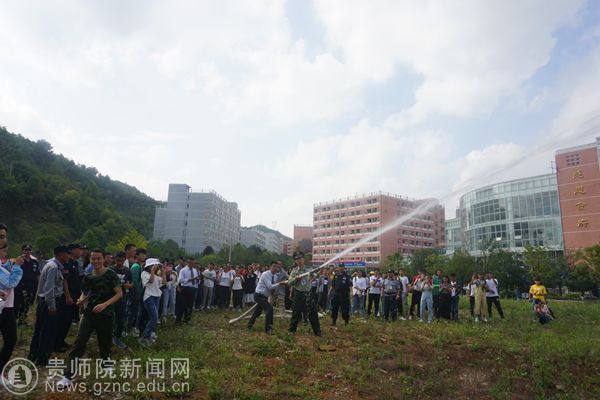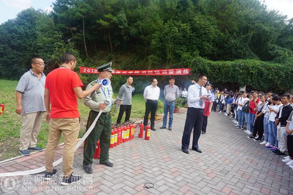 本网讯 为创建平安文明校园,使广大新生提高消防安全意识,9月25日,beat365在鉴湖旁边开展消防培训及实战演练活动,校领导令狐荣锋到现场指导工作,保卫处处长蒋江南、学工部部长韩宝银、保卫处全体人员、高新路派出所民警、物管公司、18级新生代表参加培训及演练活动。本次活动特邀乌当区消防大队参谋曹徽为师生进行消防安全知识讲解。
