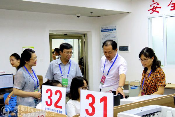 石培新、郭文一行实地查看了扫描室,听取了赵德肃等关于试卷扫描和评卷流程的介绍,详细询问了相关技术细节。并勉励评卷基地教师和工作人员认真履行职责,严格遵守纪律,保质保量完成本次评卷工作。