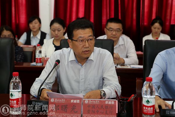 中国人民银行贵阳中心支行副行长郝曙光在讲话时强调,诚信文化建设是社会信用体系建设的重要内容,是各行业间、各社会主体之间互动的基本准则,是现代社会发展的基础。他指出,人行要加强与学院及相关部门的联动,密切协作,共同推进校园诚信教育基地建设和信用学科建设,充分发挥学校在人才教育培养过程中的基础作用,把诚信理念贯穿学生德育教育、教学管理和服务各环节,引导和培育广大青年学生树立诚信待人,诚信处事,诚信学习,诚信立身的良好习惯,培养一批讲诚信懂征信的人才。他希望,在座的各金融机构,结合自己的职能定位,群策群力,共同推进校园诚信教育基地建设、人才培养过程中的作用。
