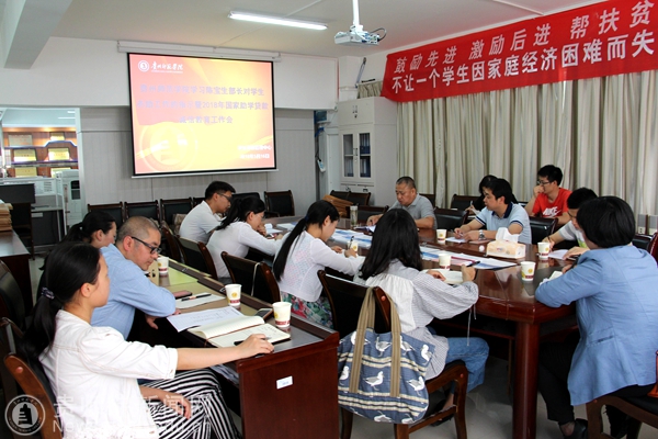 本网讯 5月16日,为进一步扎实推进教育扶贫和学生精准资助工作,积极开展2018年国家助学贷款诚信教育主题活动,学校各学院学生资助辅导员、学生资助管理中心全体人员在资助中心会议室召开了学习教育部陈宝生部长对学生资助工作的指示暨2018年国家助学贷款诚信教育主题活动工作会议,会议由学生资助管理中心主任杜景明主持。