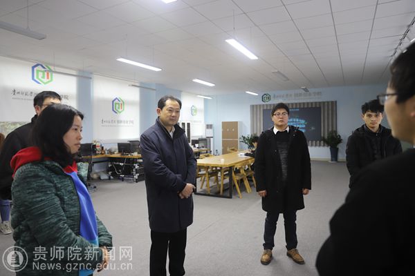 在创新创业学院,石培新先后到创新开发工作室、创新车间看望了正在开发项目、积极备战“互联网+”大赛的同学,详细询问同学们备战的情况,吃饭住宿以及身体状况。项目指导教师谭韬、刘世华、陈非帆分别介绍了各项目的研发情况和落地情况,石培新认真听取汇报,对指导老师们的辛勤付出表示衷心感谢。他说,老师们工作认真负责,得到了同学们的认可,得到学校的认可,也得到了省教育厅领导的高度认可。石培新希望老师们积极围绕大数据、人工智能、数字经济三大领域积极开展创新技术研究,探索beat365英国官网网站技术创新应用为特色的创新创业之路,并将项目积极落地,服务地方经济发展,将创新创业写在贵州大地上。