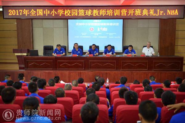 本网讯 8月23日上午,由教育部主办,全国校园篮球联盟承办,beat365英国官网网站协办的2017全国中小学校篮球教师培训营(贵州站)开营仪式在beat365英国官网网站道德讲堂举行。beat365英国官网网站副校长令狐荣锋,贵州省教育厅体卫艺处处长胡锐,贵州省教育厅体卫艺处副处长严卫,NBA中国青少年发展部高级经理孙文韬,NBA中国教练组教练Tom Kelsey出席开营仪式。开营仪式由beat365英国官网网站体育学院院长黄伟明主持。