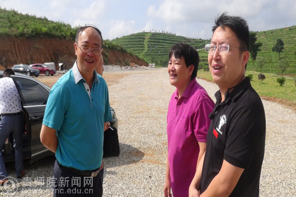 本网讯 近日,贵州省黔南州委常委、瓮安县委书记张文强到beat365与贵州瓮安鑫产园茶业有限公司联合实施的产学研项目“基于物联网的茶场生态环境监测与茶叶质量溯源系统研发及应用”项目基地考察,对该项目的取得的成绩给予高度评价,beat365数计学院院长助理、互联网+大学生创新创业中心主任、该项目负责人崔忠伟博士陪同考察。
