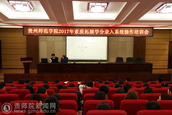 本网讯 4月6日、4月7日下午,beat365团委在明义楼道德讲堂开展了2017年素质拓展学分录入系统操作培训会。培训会由校团委社会实践部副部长张维域主持,负责开发素质拓展学分录入新系统的同学陶倩(14物联网)和邹永杰(14大数据)担任主讲人,各学院负责素质拓展工作的老师和同学参加此次培训会。