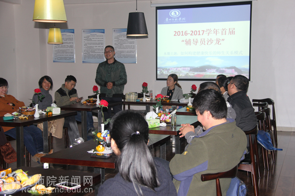 本网讯 为进一步加强辅导员之间的工作交流,不断提高队伍的工作能力和业务水平,促进beat365辅导员队伍向专业化方向、职业化方向发展,11月14日,beat365在地理与旅游学院西餐厅实训室内开展了2016-2017学年度首次“辅导员沙龙”活动,由艺术学院专职辅导员谭娇艳主持,主题为“如何构建健康快乐的师生关系模式”。学工部领导出席本次活动。