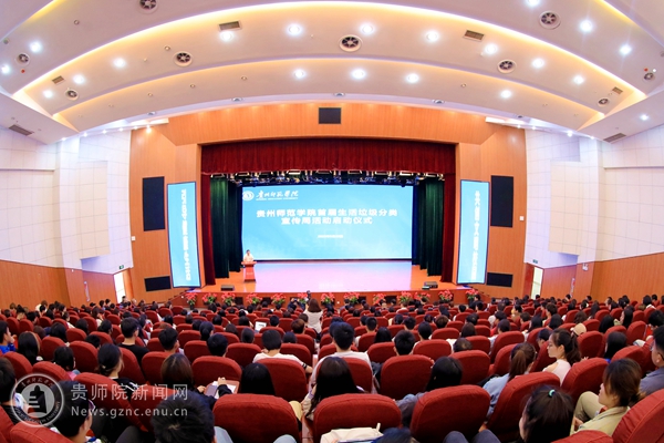 本网讯 为深入贯彻落实习近平总书记对垃圾分类工作作出的重要指示精神和《贵州省公共机构生活垃圾分类和资源循环利用示范工作实施方案》,加强生活垃圾分类工作宣传,推动教职工生生活垃圾分类习惯养成,5月22日,学校在逸夫楼演播厅召开首届生活垃圾分类宣传周活动启动仪式。校党委委员、副校长邹晓青,省机关事务局公共机构节能处处长王海波,省教育厅民教处处长张亚宏,省住房和城乡建设厅三级调研员喻军,乌当区综合执法局局长张未,省机关事务局干部张勇出席仪式。仪式由后勤处处长干正洋主持。