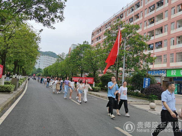 校领导,各学院党政负责人,部分职能部门领导,各毕业班专兼职辅导员以及2021届全体毕业生齐聚运动场出发,漫步校园,共上一堂“行走的思政课”。师生“漫步长龙”在飘扬的校旗带领下,走过体育馆,那个让同学们激昂青春,挥洒汗水的地方,路过图书馆,那个奋进拼搏的知识海洋,经过教学楼,那个共学共研共进的教室,踏过文化长廊,再看一眼长廊里名言典句,经过鉴湖,睡莲和瘦竹依旧,来到学生公寓,陪伴四载最温馨的那方小天地,信息楼前文明督查队唱着“我们师院青春闪光芒,学子遍神舟……”,凤凰广场上体院学弟学妹“龙狮”相会,孔子像前我是师范生宣讲团朗朗上口的诵《师说》,鉴湖旁美设学院师生艺术写生,学生公寓楼前宿舍阿姨的叮咛,“易班熊”的挥手,印山书院前“四史宣讲团”的红色经典诵读,是信仰的力量,是行走的课堂,是温情的告别,毕业生们漫步在校园每一寸熟悉的土地,回顾大学时光的每一瞬间,一景一物镌刻在心。