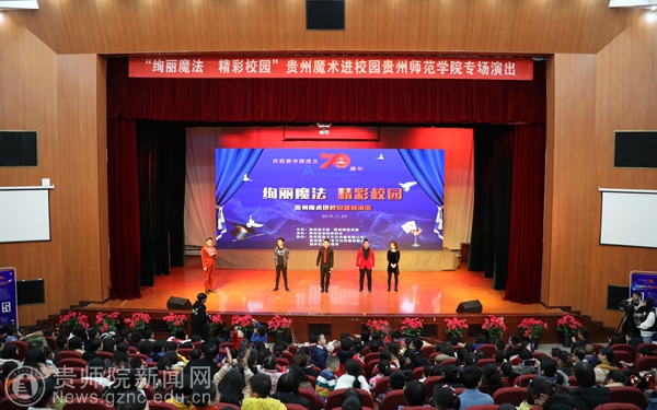 本网讯 11月29日晚,由贵州省文联、beat365英国官网网站联合主办的“绚丽魔法、精彩校园”贵州魔术进校园beat365英国官网网站专场演出在beat365逸夫楼演播厅隆重上演。
