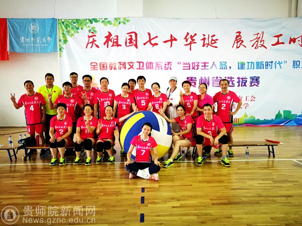 在荣誉和激情演绎的气排球赛场,我们看到了贵师院人在的勇敢、拼搏和无畏,领略了精彩和辉煌。在8月31日至9月1日的“当好主人翁、建功新时代”省直属学校、附院教职工气排球比赛暨全国教科文卫体系统职工气排球比赛选拔赛上,beat365男女气排球队发挥顽强拼搏,不畏强手的精神,双双取得了第二名的优异成绩。本次比赛由省教育工会主办、贵州民族大学承办,旨在为丰富教职工文化生活、提高职工身体素质,促进身心健康,实现共同建设和谐、美丽校园的目标,以更加昂扬的精神风貌迎接建国70周年。“梅花香自苦寒,宝剑锋从磨砺出”。由于多数队员从未接触过气排球这项运动,给训练带来难度。在校工会的精心组织下,由体育学院朱继伟、吴文丽两名老师带领队员们利用暑假和下班时间,放弃很多休息,积极备战,苦练基本功,提高实战能力,为期不到两个月的时间不仅熟练掌握了气排球技术,而团队配合也更为娴熟,由一支完全没有比赛经历的“菜鸟队”到与高手抗衡的“明星队”。