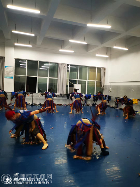 8月6日参赛队伍正式踏上征程,7号比赛前一天,同学们不厌其烦不惧劳累的反复对光、排练,只为了给观众呈现最美、最优秀、最独一无二的《贲牛搏角》。因为它对于师院来说不仅仅只是荣誉,还有更加特殊的意义。