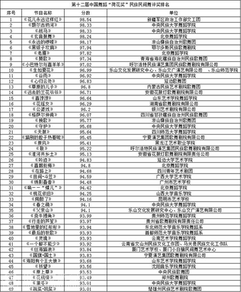 获奖排名