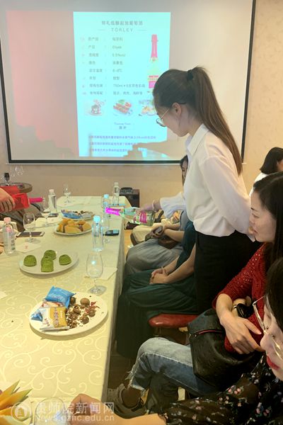 此次活动特邀国家二级专业品酒师强尧先生进行全程活动指导,培训老师从葡萄酒历史、葡萄酒礼仪、营养与保健、开瓶和保存方法等方面,介绍了葡萄酒相关的小常识。接着老师通过对葡萄酒的原料、价格等方面的分析来阐述葡萄酒的特性,为了让大家有更直观的感受,培训老师还打开了来自5个国家、不同类型的葡萄酒,让大家零距离接触。当香气四溢的葡萄酒开启时,一时间品酒会场内酒香扑鼻,参会者在培训老师的带领下,从色泽、香气、味道、口感等方面,对不同葡萄酒进行品鉴,开启了一场舌尖上的“嘉年华”。活动中还穿插了精彩的互动环节,大家通过学习、回答的形式,了解到了葡萄酒制作过程的知识,活动互动有趣,积极参与的同事都获得了精心准备的礼物。活动最后,品酒师和参会老师们进行了自由交流,畅谈了自己关于红酒品鉴的所思所悟,耐心解答了大家的各种问题。