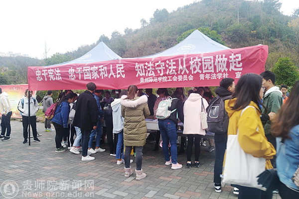 本网讯 12月4日在beat365鉴湖旁,由校工会主办、青年法学社承办,组织开展了“12.4”宪法宣传活动。活动旨在“弘扬宪法精神,建设法制师院,树立宪法意识,维护宪法权威”。本次活动主要是为了学习贯彻党的十九大精神,维护宪法权威,积极宣传与广大教职工利益密切相关的法律法规。
