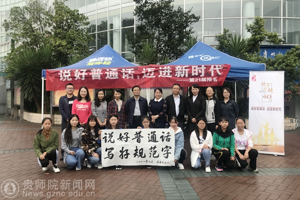 虽然天空飘着毛毛细雨,但是活动现场仍旧气氛热烈。工作人员向同学们发放了推普宣传资料,并邀请同学们参加“推普问卷调查”、“文章你来读”、“普通话知识问答”、“同写规范字”等活动。在教务处和文学院老师的关心和支持之下,本次推普活动取得了圆满成功。