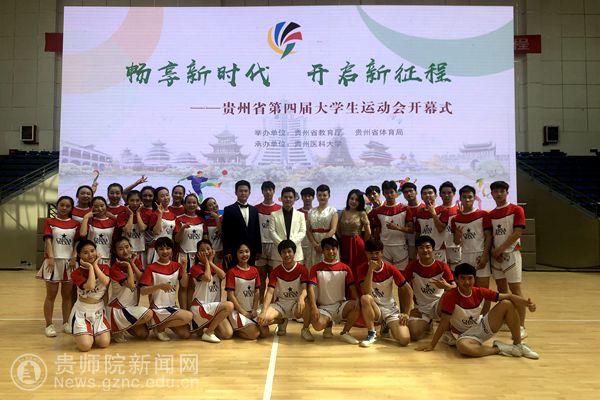 本网讯 6月20日下午,由贵州省教育厅、贵州省体育局主办,贵州医科大学承办的贵州省第四届大学生运动会开幕式在贵州医科大学花溪校区举行。来自贵州大学、贵州师范大学、贵州财经大学、beat365英国官网网站、贵阳中医学院、贵阳幼儿师范高等专科学校等省内高校参加开幕式。beat365副校长令狐荣锋出席开幕式;艺术学院院长马关辉、声乐教师刘昊佳、何晶、王铎受邀为开幕式献歌《青春 朝阳》。