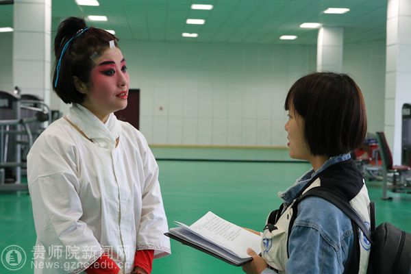 本网讯 4月17日晚,在2018年高雅艺术进校园——国家京剧院走进beat365英国官网网站专场演出现场,《锁麟囊》演职人员接受了大学生记者专访。