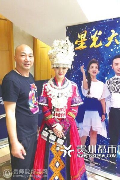诗诗:其实参加这次比赛呢真的是在一种机缘巧合的情况下得以参加的,当时是我的老师先收到消息,然后老师建议我报名,后来我就报名了。当然了比赛前期筛选是非常严格的,很多人可能都会误认为央视舞台《星光大道》是一个百姓舞台,可能平台会没那么高,机会也会更多一些。实则不然,就单单是在咱们贵州也是由三十强挑选十强,再从众多的优秀选手中层层筛选,经过不断的比赛才得以参加。也是因为自己运气比较好,恰巧自己表演的节目符合评委的口味,就被选上了。