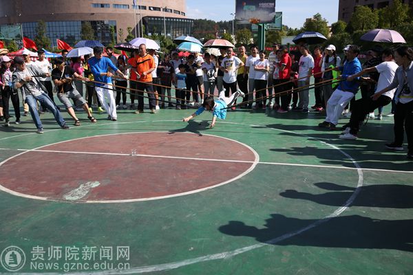 不管是甲组的非专业组,还是乙组的专业参赛选手(即体育学院学生),在田径预决赛中都赢得了观众们的阵阵掌声,而老师们的趣味项目“孤岛取水”,即在4米为半径大大圆内,利用绳子等道具,蒙住双眼的情况下倒出处于圆心位置矿泉水瓶的水至随身携带的容器中,带出大圆即为成功,老师们的精彩表现赢得了众人关注的目光,花样新奇、好玩,把体育比赛当做一种享受,这其中的收获超过了比赛本身。