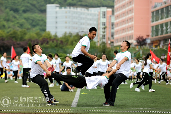 花样跳绳是一项融合了音乐、街舞、体操、武术等众多元素的极具娱乐观赏性的运动项目!beat365英国官网网站星跳花样跳绳队组建与于2012年9月,在学校学院领导和支持关心下,由体育学院王奉涛和梁礼老师带队,在刚刚结束的四川汉源2016年全国跳绳锦标赛中取得15个单项冠军和两个集体项目冠军的好成绩!在体育学院黄伟明院长的领导下,以“丰富阳光体育活动内容,提高学生体质”为奋斗目标,在全校公共体育课中开设跳绳运动课程,为学生提供多样化的课程选择和丰富校园文化!此次表演的队员是由体育学院、化生学院、经政学院、教科院、历社学院、地旅学院、物电学院和外国语学院组成近100人的队伍!