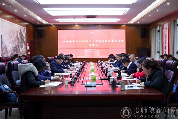 本网讯 12月18日,贵州电子商务职业技术学院党委书记罗松华,党委副书记、院长杨昌顺一行到beat365开展考察调研工作。校党委书记石培新,校长韦维,校党委委员、副校长潘运陪同调研并出席座谈会。