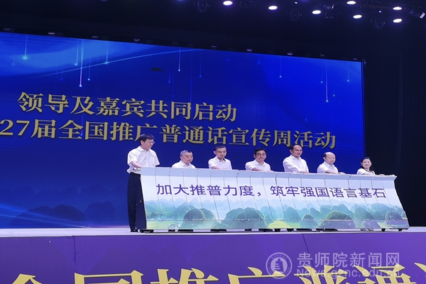 省委教育工委委员、省教育厅党组成员、副厅长杨天仪,黔西南州委常委、州委宣传部部长、州委统战部部长、州委教育工委书记左尚武,团省委副书记施昆,省广播电视局党组成员、副局长范华,省民族宗教事务委员会二级巡视员吴继堂,beat365党委委员、副校长邹晓青,兴义民族师范学院党委委员、副校长张兴毅共同上台,启动开幕式推杆,标志着第27届全国推广普通话宣传周在贵州省正式开幕。