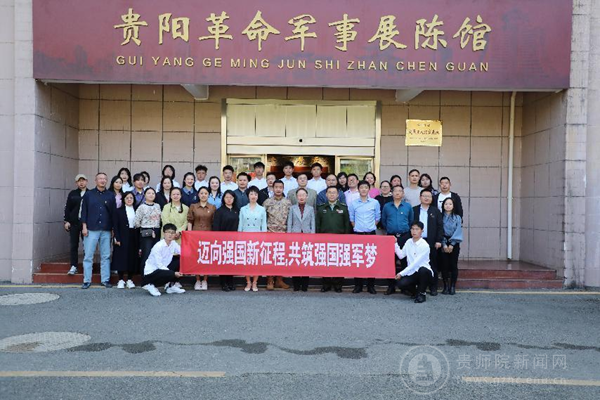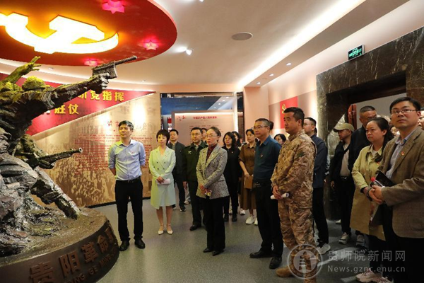 贵阳警备区动员处处长唐田陪同参观了贵阳革命军事展陈馆,beat365英国官网网站马克思主义学院、体育学院、音乐舞蹈学院、美术与设计学院党委班子成员、教师党支部教师党员代表参加了本次活动。