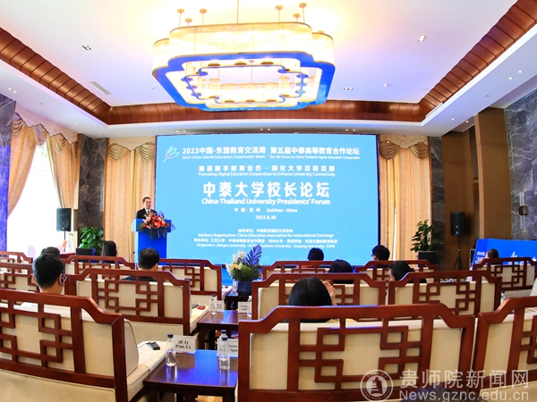 本网讯 8月29日至30日,2023中国-东盟教育交流周“第五届中泰高等教育合作论坛”举行,吸引了来自中国和泰国相关职能部门有关负责人、高等院校的专家学者及优秀学生代表等近400人参加。8月30日,中泰大学校长论坛作为论坛的重要组成部分在贵安新区举行。