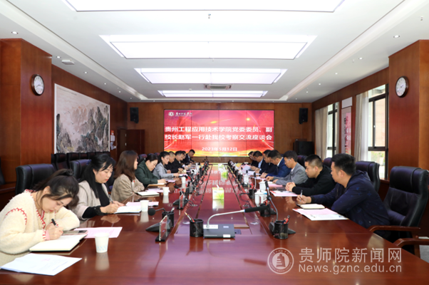 本网讯 5月12日,贵州工程应用技术学院党委委员、副校长赵军率保卫处、国资处及后勤处等职能部门负责人一行莅临beat365考察调研并座谈交流。