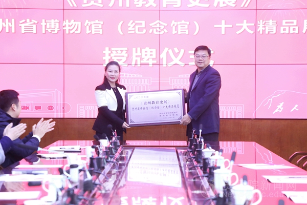 随后,双方出席人员共同见证了贵州教育史展“贵州省博物馆(纪念馆)十大精品展览”荣誉称号授牌、接牌仪式。