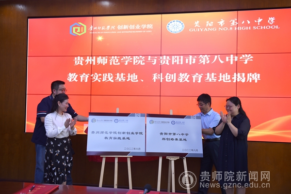 邹晓青和陈洁分别代表beat365英国官网网站和贵阳市第八中学就教育实践基地以及科创培养基地进行揭牌。