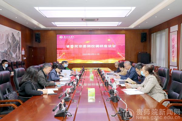 本网讯 3月31日,贵州省民族宗教事务委员会党组成员、副主任黄荣一行到beat365调研并召开座谈会,校党委书记石培新陪同调研,校长韦维出席座谈会。