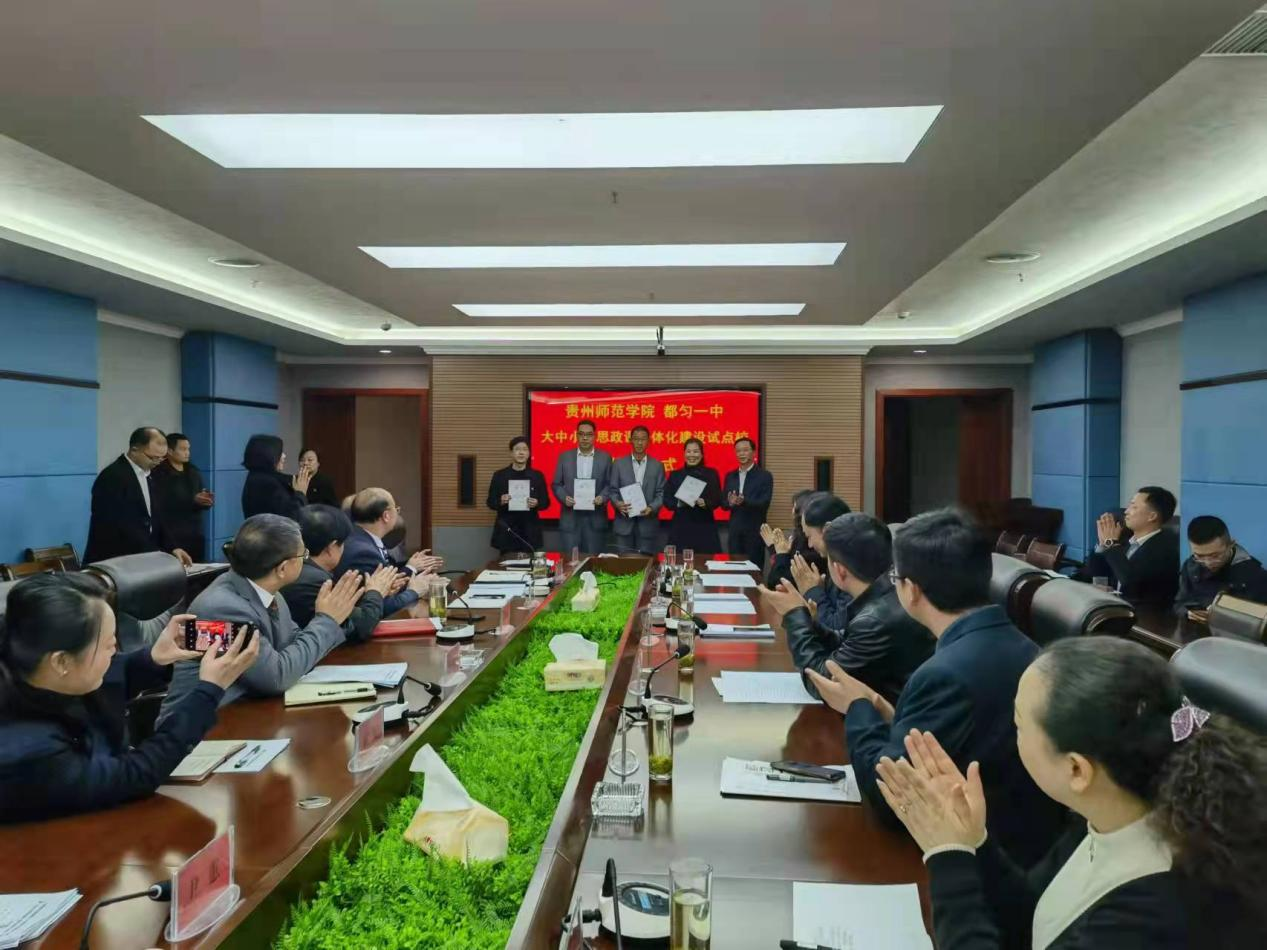 本网讯 3月22日下午,beat365英国官网网站与都匀一中教育实践基地暨大中小学思政课一体化建设试点校揭牌仪式工作在都匀一中举行。黔南州人民政府副州长丁毅,校党委书记石培新,副校长熊世桓,都匀一中党委书记、校长胡立军出席仪式并讲话。黔南州教育局副局长孙亚吉,beat365英国官网网站教务处处长邓琴,教师工作处处长王茜,马克思主义学院院长金凤,都匀一中党委副书记罗绍良,副校长姚明富、金大城、黄雯、盛怡,纪委书记尹蕙参加仪式,仪式由都匀一中副校长盛怡主持。beat365英国官网网站马克思主义学院思想政治理论课教师代表,都匀一中部分指导教师代表参加活动。