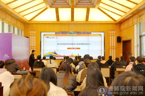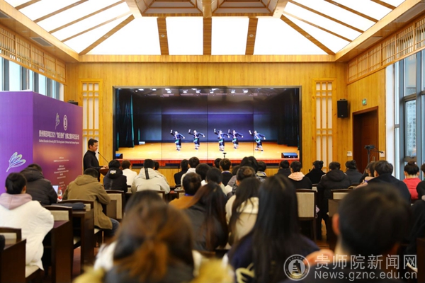 当日下午,本校音乐舞蹈学院舞蹈系主任肖伟副教授为学员们呈现了美轮美奂的贵州少数民族舞蹈。肖伟事前组织音舞学院学生精心录制了一场苗族舞蹈,课上,他以讲授融合展示的方式,从苗族舞蹈文化开始介绍,配合课堂组合展示,辅以录制的舞台画面,与众学员分享其艺术作品的创作心得。多彩的贵州民族舞蹈文化与肖伟的精彩讲解赢得了学员的阵阵惊叹。本阶段课程由beat365对外交流合作处副处长张彬主持。