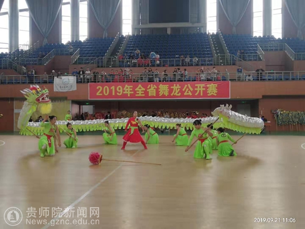 本网讯 9月21日,贵州省首届舞龙公开赛在贵阳学院体育馆举行。全省共有15支舞龙精英队伍200余人参赛,分别以舞龙规定和自选套路及竞速舞龙进行同场角逐。