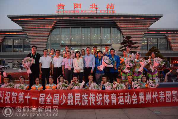 9月17日,第十一届全国少数民族传统体育运动会贵州代表团载誉归来。副省长王世杰到贵阳北站迎接凯旋归来的运动员代表并讲话。欢迎仪式由贵州代表团副团长,省委统战部副部长,省民宗委党组书记、主任石松江主持。贵州代表团秘书长、省民宗委副主任徐佑刚,贵州代表团秘书长、省体育局巡视员王建忠等参加欢迎仪式。