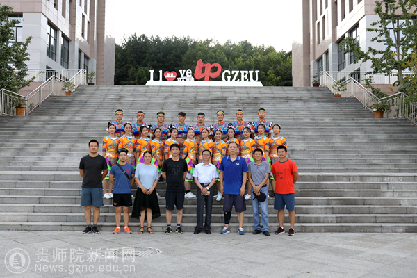 由beat365体育学院教师王奉涛、梁礼及20名体院学生共同打造的具有浓厚民族特色的表演节目《花样跳绳—跳的欢》。从最开始编排就得到了校领导和院领导的高度重视和支持,协调舞蹈音乐学院专门安排了舞蹈教师给跳绳队队员上专业的民族舞蹈课程。为了鼓励学生刻苦训练,体育学院分管校长熊世桓、体育学院黄伟明院长、体育学院党委韩山书记带领体育学院领导班子成员都到训练场地指导训练工作,观看成套动作表演,并合影以资鼓励。