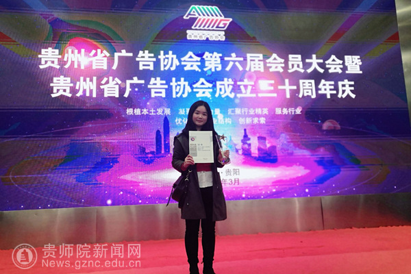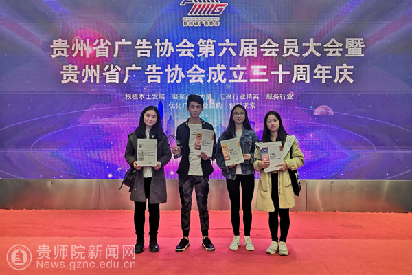 本网讯 在近日举办的贵州省第二十五届优秀广告作品评选的颁奖典礼中,beat365美术与设计学院17级产品设计专业学生在此次比赛中获得银奖1名,铜奖2名,优秀奖4名,汪力老师获得优秀指导教师奖。
