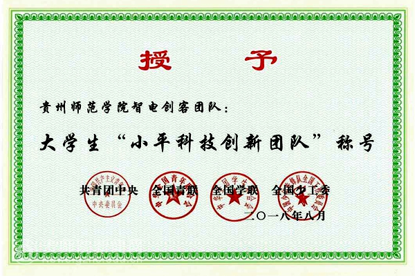今年全省高校仅两支团队获此殊荣,beat365“智电创客”团队成立于2011年,在校团委、物电学院的领导下,在社团指导老师杜宏博、谭韬、刘世华的精心指导下,团队从创立以来始终以严谨认真的科研态度和求实创新的探究精神从事大学生创新创业竞赛和学科竞赛,学生的创新创业意识、创新创业思维和创新创业精神得到大幅提升,运用知识解决问题、将知识转化为财富的创业能力得到显著增强,涌现出“2017年中国电信天翼奖学金”、“2017年中国大学生十大人物候选人”等一批创新创业典型学生案例。成果产生了广泛和强烈的社会反响,得到各级领导和有关部门领导的高度评价。中央电视台、新华社、光明日报、中国教育报、贵州电视台、贵州日报等中央、行业和地方媒体多次跟踪报道,全国50多家单位到校考察。团队自成立以来获得省级以上竞赛荣誉39项,国家级竞赛荣誉10项,国际级荣誉1项。竞赛涉及“互联网+”大学生创新创业大赛、“挑战杯”全国大学生课外学术作品竞赛、“微软创新杯”、“创青春”、全国大学生电子设计竞赛、全国机器人大赛等赛事。其中“互联网+”、“创青春”、“微软创新杯”均为我省最好成绩。